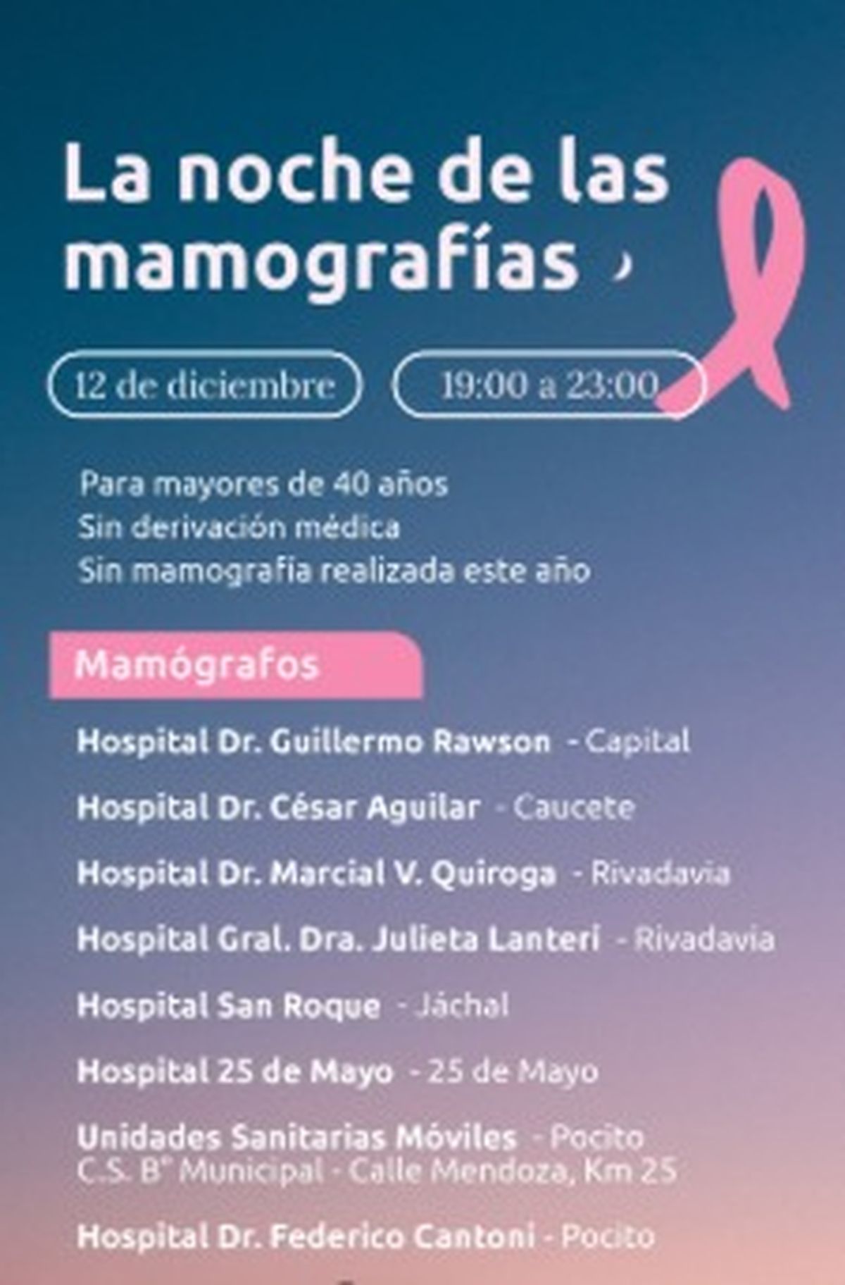 El 12 de diciembre, de 19 a 23, se realizará una jornada especial para facilitar el acceso a mamografías a mujeres que no pueden asistir en horario habitual.