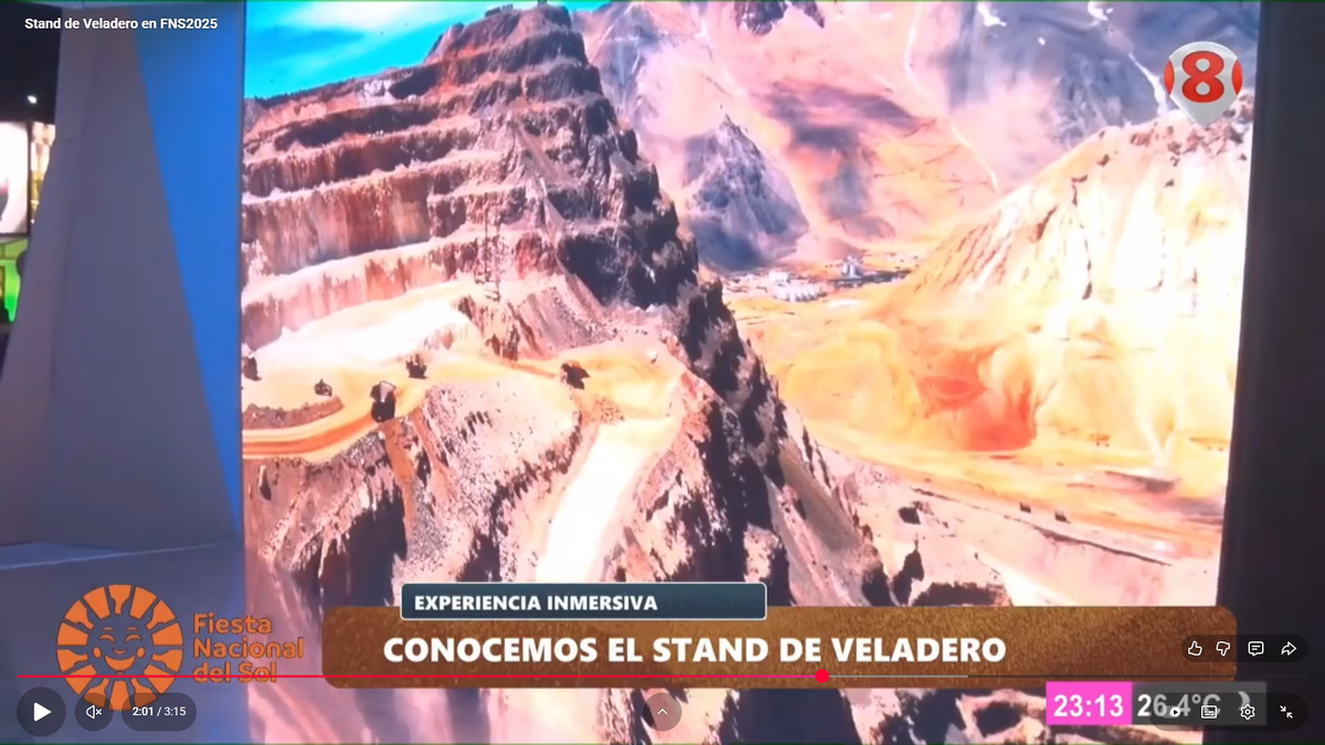 El recorrido comienza con la entrega de un ticket y una introducción al ingreso a la cordillera. Para lograr la ambientación, el stand incorpora efectos especiales, frío artificial y pantallas que simulan el ascenso. “Es una primera impresión del trayecto hacia Veladero. Se siente el frío y el cambio de ambiente, igual que cuando subimos a Mina”, explicó Geraldín.
