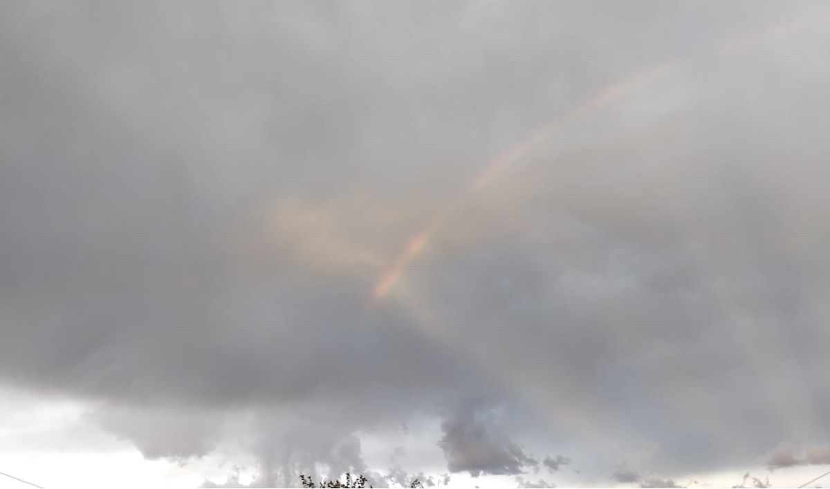 En varios puntos de la provincia y por breves segundos, se vio el arcoiris, en un cielo casi completamente nublado.
