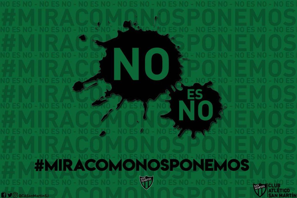 El hashtag #MiraComoNosPonemos recorrió las redes sociales durante la jornada del miércoles y desde el Club Atlético San Martín publicaron un mensaje en sus cuentas oficiales en un claro apoyo a la joven denunciante.