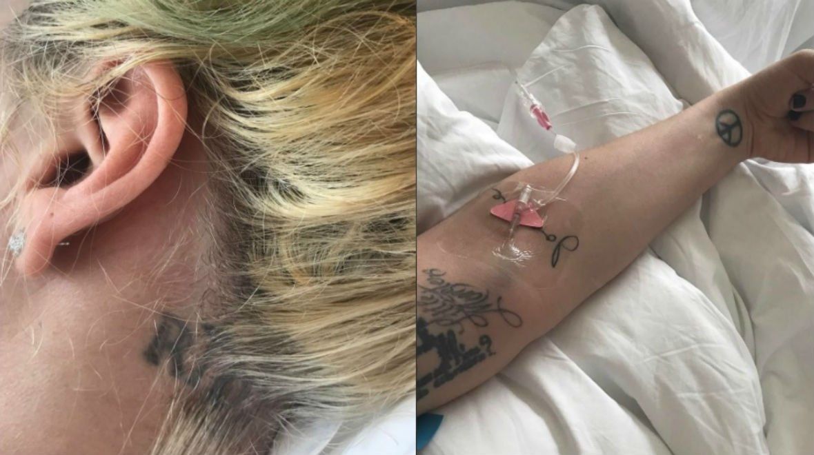 La rubia mostró impactantes imágenes desde el hospital con suero en uno de sus brazos.
