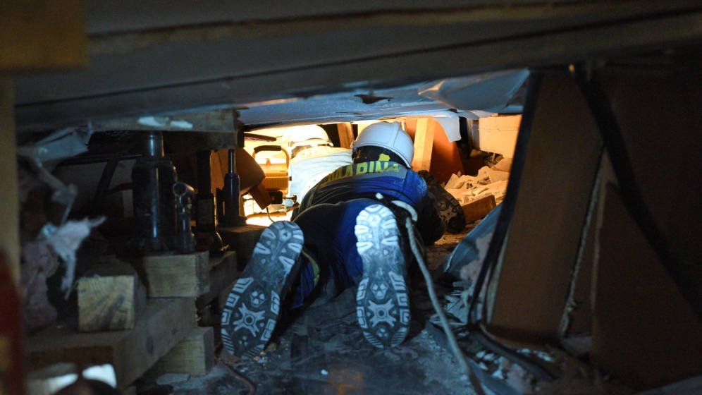 La lluvia sobre amplios sectores de la capital complicaba aún más los rescates, pero se siguió trabajando con escaners térmicos mientras valientes rescatistas se sumergían en estrechos boquetes de metros de largo cavados en la pila de escombros.