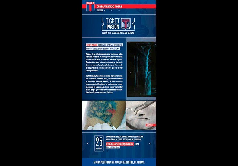 El departamento de marketing de Tigre lanzó una prueba piloto llamada "Ticket Pasión", el primer sistema de ingreso al estadio por Biohacking que, en caso de funcionar, reemplazaría a los carnets tradicionales.