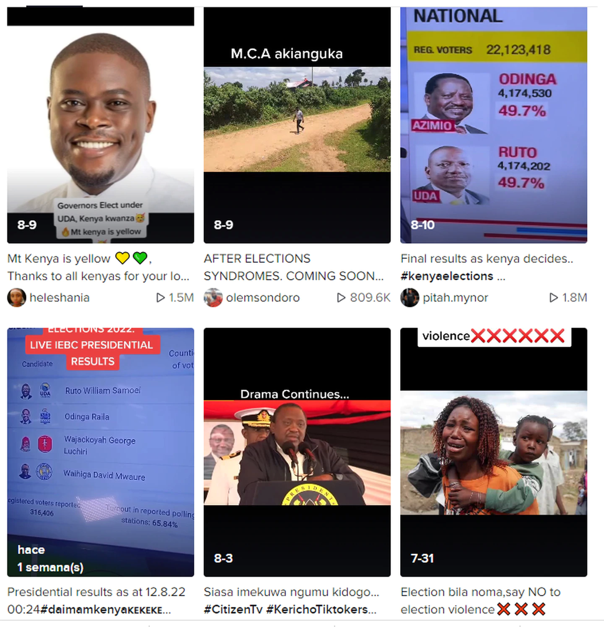 Antes de la reciente elección presidencial en Kenia, una publicación muy compartida en TikTok mostraba una imagen modificada y violenta de uno de los candidatos con una leyenda que lo describía como un asesino (la publicación fue eliminada después de un tiempo). Según lo informó Tiffany Hsu en un artículo reciente , las mentiras sobre dietas y los tiroteos en las escuelas se pueden propagar con facilidad en la aplicación, al igual que variaciones sobre la conspiración del PizzaGate.