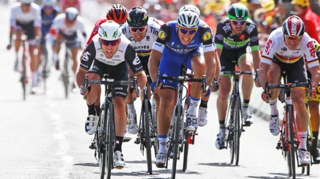 Al frente del pequeño pelotón, el integrante del equipo Dimension Data ganó el "maillot" amarillo, mismo que portará este domingo en la segunda jornada.La mala noticia del día fue para el español Alberto Contador, quien sufrió una caída en el segundo tramo de la contienda. Perdió el control de la bicicleta en una curva cuando se encontraba con el pelotón, pero se vio obligado a cambiar de bicicleta.Con el uniforme desgarrado y la piel visiblemente dañada en el hombro derecho, así como en el muslo, el pedalista se reincorporó a la carrera, pero llegó a la meta 55 segundos detrás del primer lugar, en la posición 86. Para el segundo día de competencia, los ciclistas deberán recorrer 183 kilómetros comprendidos entre Saint-Lo y Cherbourg-en-Cotentin, el cual tendrá un mayor nivel de inclinación que la primera fase, pero lejos de lo prometido para esta justa montañosa.Resultados de la primera etapa del Tour de Francia: Po. Ciclista (País/Equipo) Tiempo 1 Mark Cavendish (GBR/DDD) 4:14:05 2 Marcel Kittel (ALE/EQS) mt. 3 Peter Sagan (SVK/TNK) mt. 4 André Greipel (ALE/LTS) mt. 5 Edward Theuns (BEL/TFS) mt.La clasificación1 Mark Cavendish (GBr) Dimension Data4:14:05 2 Marcel Kittel (Ger) Etixx - Quick-Step 3 Peter Sagan (Svk) Tinkoff Team 4 André Greipel (Ger) Lotto Soudal 5 Edward Theuns (Bel) Trek-Segafredo 6 Christophe Laporte (Fra) Cofidis, Solutions Credits 7 Bryan Coquard (Fra) Direct Energie 8 Alexander Kristoff (Nor) Team Katusha 9 Daniel Mclay (GBr) Fortuneo - Vital Concept 10 Greg Henderson (NZl) Lotto Soudal0:00:03 11 Sondre Holst Enger (Nor) IAM Cycling 12 Jasper Stuyven (Bel) Trek-Segafredo 13 Warren Barguil (Fra) Team Giant-Alpecin 14 Julian Alaphilippe (Fra) Etixx - Quick-Step 15 John Degenkolb (Ger) Team Giant-Alpecin 16 Mark Renshaw (Aus) Dimension Data0:00:08 17 Jens Debusschere (Bel) Lotto Soudal0:00:10 18 Grégory Rast (Swi) Trek-Segafredo0:00:11 19 Albert Timmer (Ned) Team Giant-Alpecin 20 Maximiliano Richeze (Arg) Etixx - Quick-Step