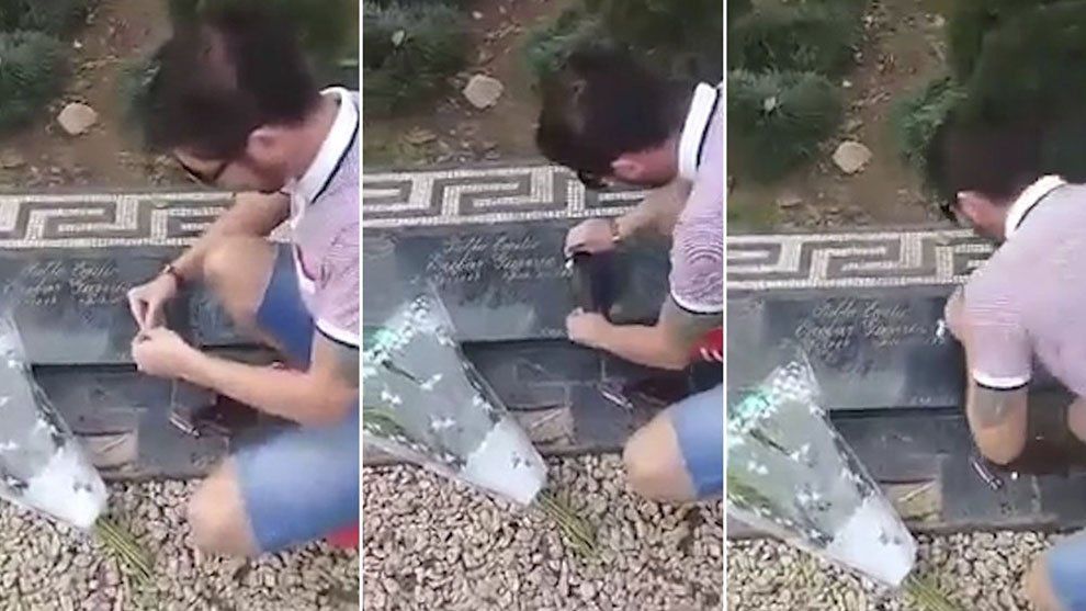 En las imágenes se ve a Steven Semmens, ciudadano de Reino Unido, cuando esparce sobre la lápida del narco el polvo blanco contenido en una bolsa, después enrolla un billete con el que inhala el alcaloide. "Una línea de coca sobre la tumba de Pablo Escobar, directo de la cárcel de Swansea", escribió el hombre en el post de Facebook donde publicó el vídeo.