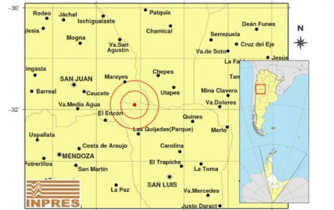 Según informó el Instituto Nacional de Prevención Sísmica (Inpres), el sismo sucedió a las 23.37 y tuvo una magnitud de 5.2. El epicentro del sismo fue a 136 km al E de San Juan; 171 km al NO de San Luis; 55 km al S de Marayes -31.928 (lat) -67.163 (long).