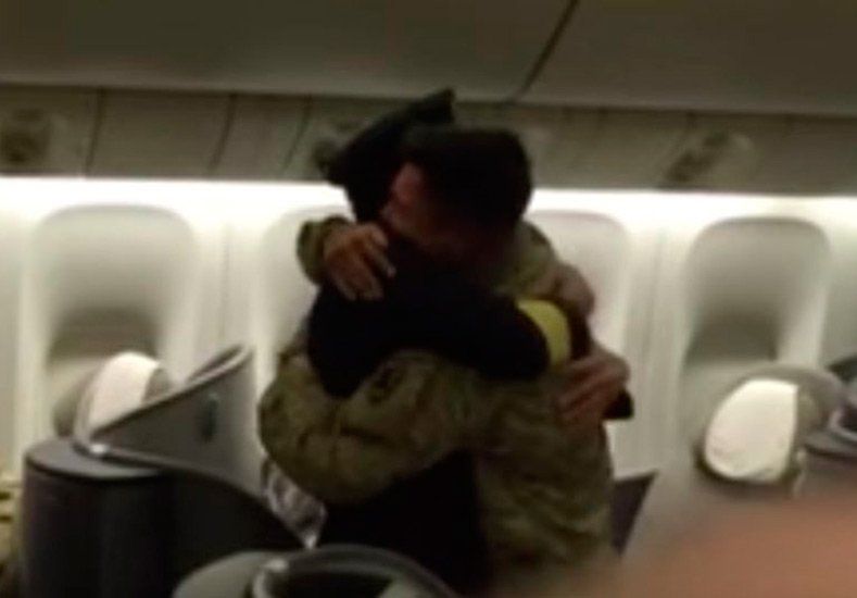Un padre sorprendió a su hijo soldado en el vuelo de regreso a casa