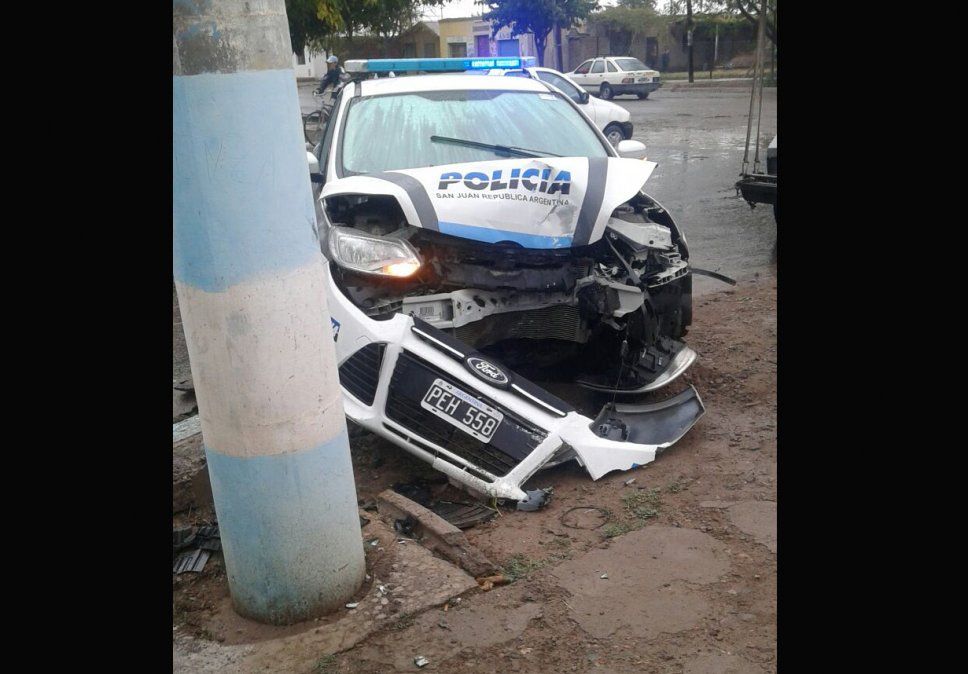 Un móvil policial de la seccional 9º de Caucete chocó contra un pilar en el interior del barrio Guayama, en ese departamento. Fue porque intentaban atrapar a dos ladrones que habían robado en la zona pero los vecinos quisieron impedirlo arrojándoles ladrillos.