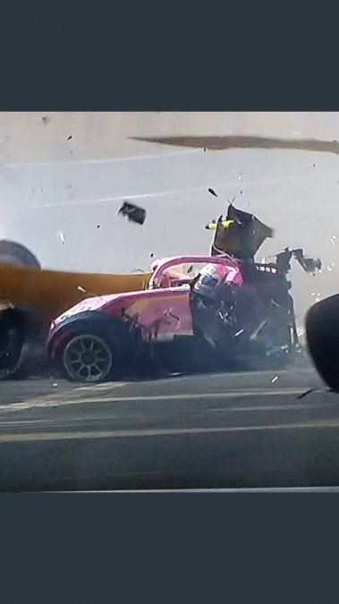El vehículo en el que viajaba se partió al medio luego de chocar con las protecciones del circuito y de sufrir el impacto del monoplaza que conducía el estadounidense Juan Manuel Correa.