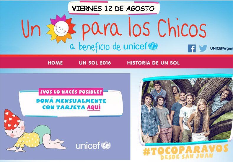 El prestigioso programa “Un sol para los chicos” que hace 25 años realiza masivas colectas para UNICEF llegará a San Juan el próximo 12 de agosto y tendrá un escenario en el Centro Cívico.
