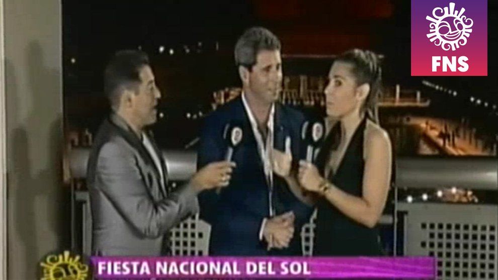 El gobernador Sergio Uñac pasó por el especial de Canal 8 en el Centro Cívico y fue entrevistado por Mariano Iúdica y Mina Bonino. Comentó que venía del recital de Ulises Bueno y dijo que el cantante "más que un artista es un amigo para los sanjuaninos".