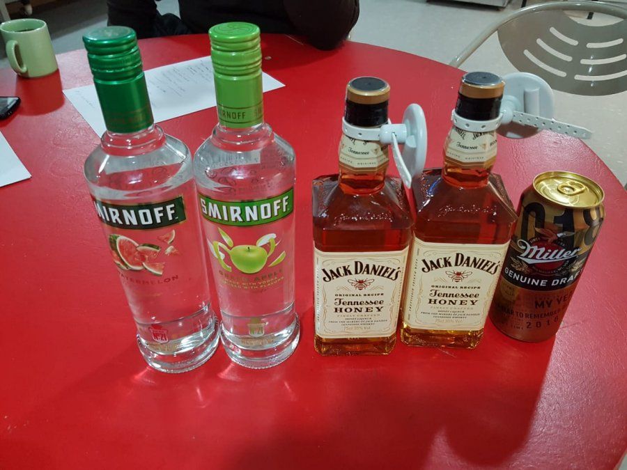 Dos botellas de whisky Jack Daniels Honey, dos de vodka Smirnoff y una lata de cerveza Miller es lo que intentaron hurtar. La suma total de los productos era de $2.500.