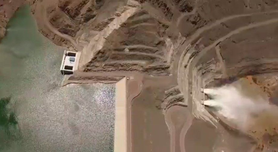 En medio de los trabajos realizados en Caracoles, los operarios procedieron a la liberación de caudal por el aliviadero.